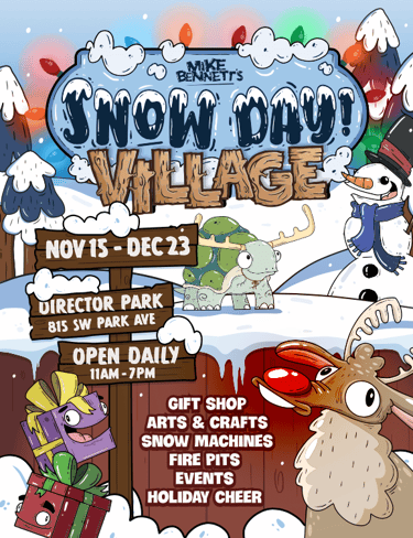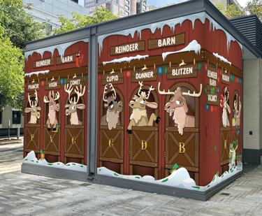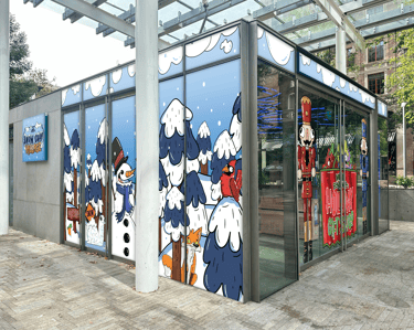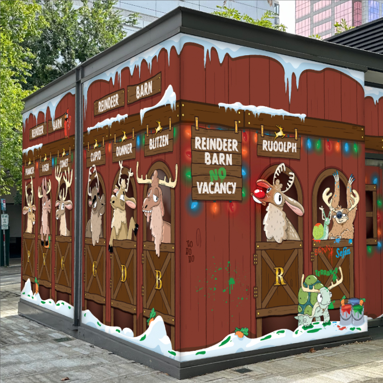 I have had the great opportunity to collaborate with local illustrator Mike Bennett and his studio on some illustration and design projects. Using his unique and lovable characters to create a sense of public joy.