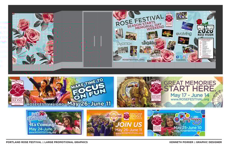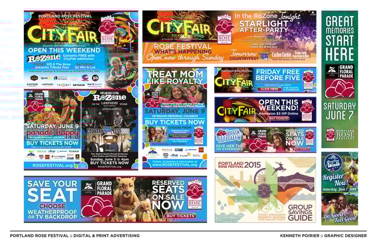 For over 15 years I had the pleasure of having the Portland Rose Festival as a client. During that time I produced almost every logo, poster, ad, and piece of collateral that was used to promote Portland's premiere festival.