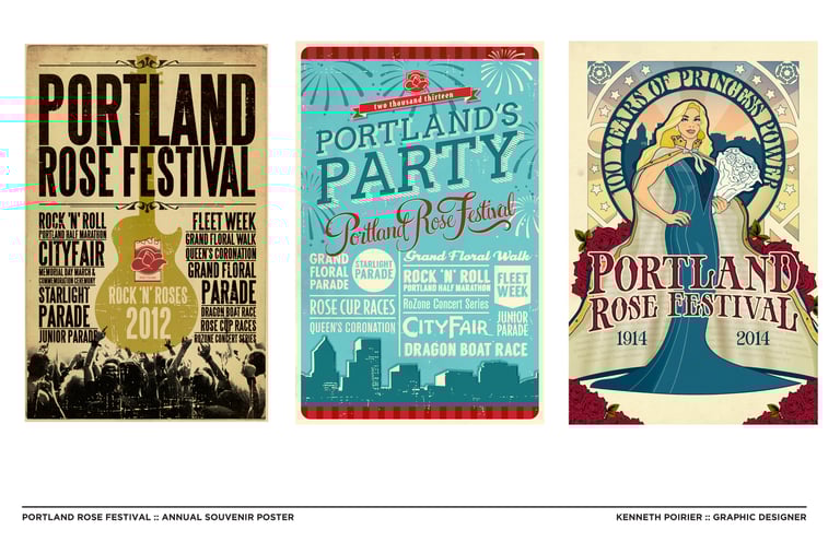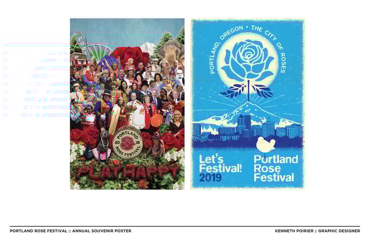 For over 15 years I had the pleasure of having the Portland Rose Festival as a client. During that time I produced almost every logo, poster, ad, and piece of collateral that was used to promote Portland's premiere festival.